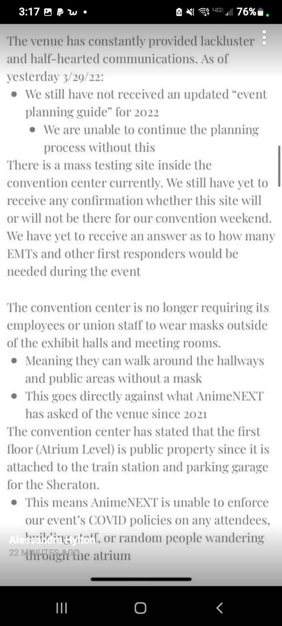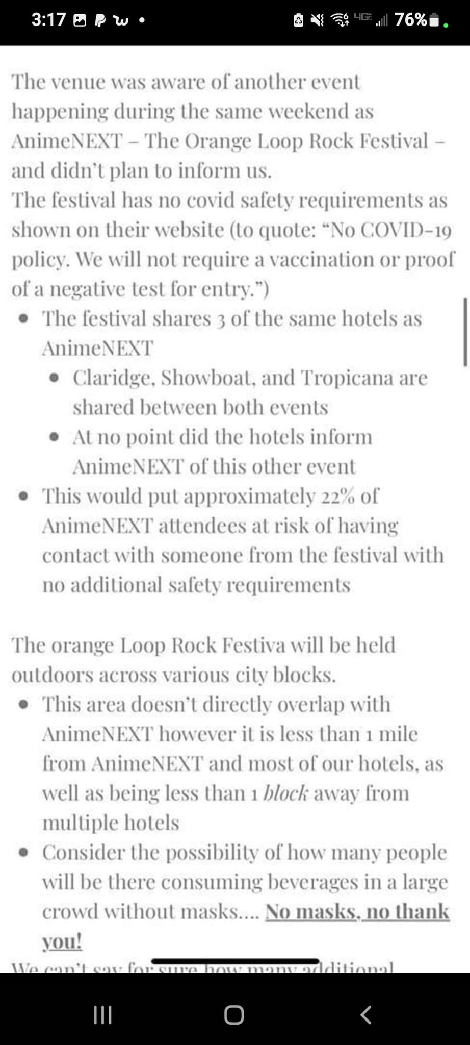 AnimeNext has removed this section from their statement and has updated it to say that “Due to the contractual obligations, we’re still required to hold an “event” within the convention center; otherwise, we’d trigger multiple cancellation clauses which would have a significant negative impact on our ability to have future events.”