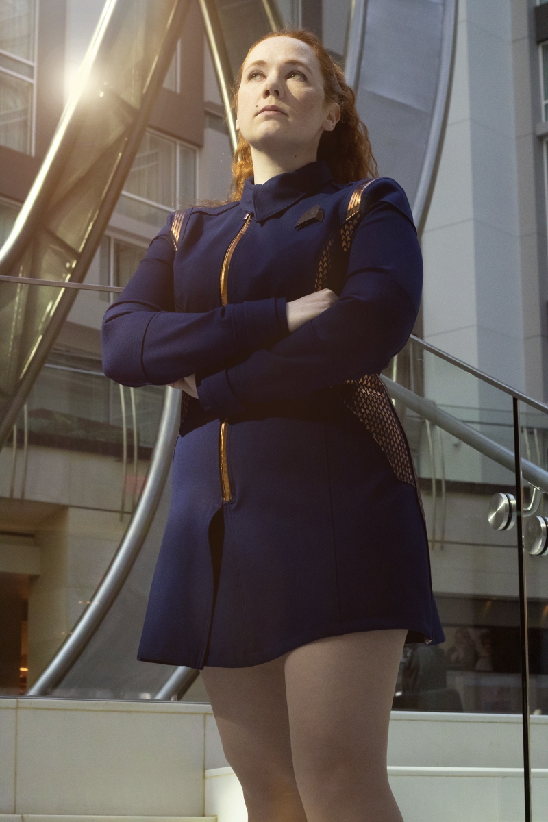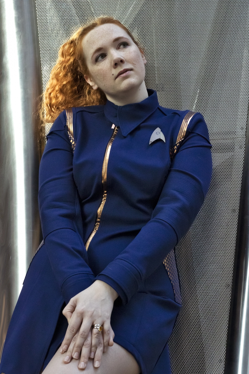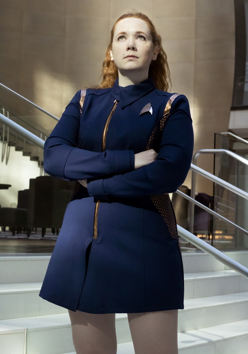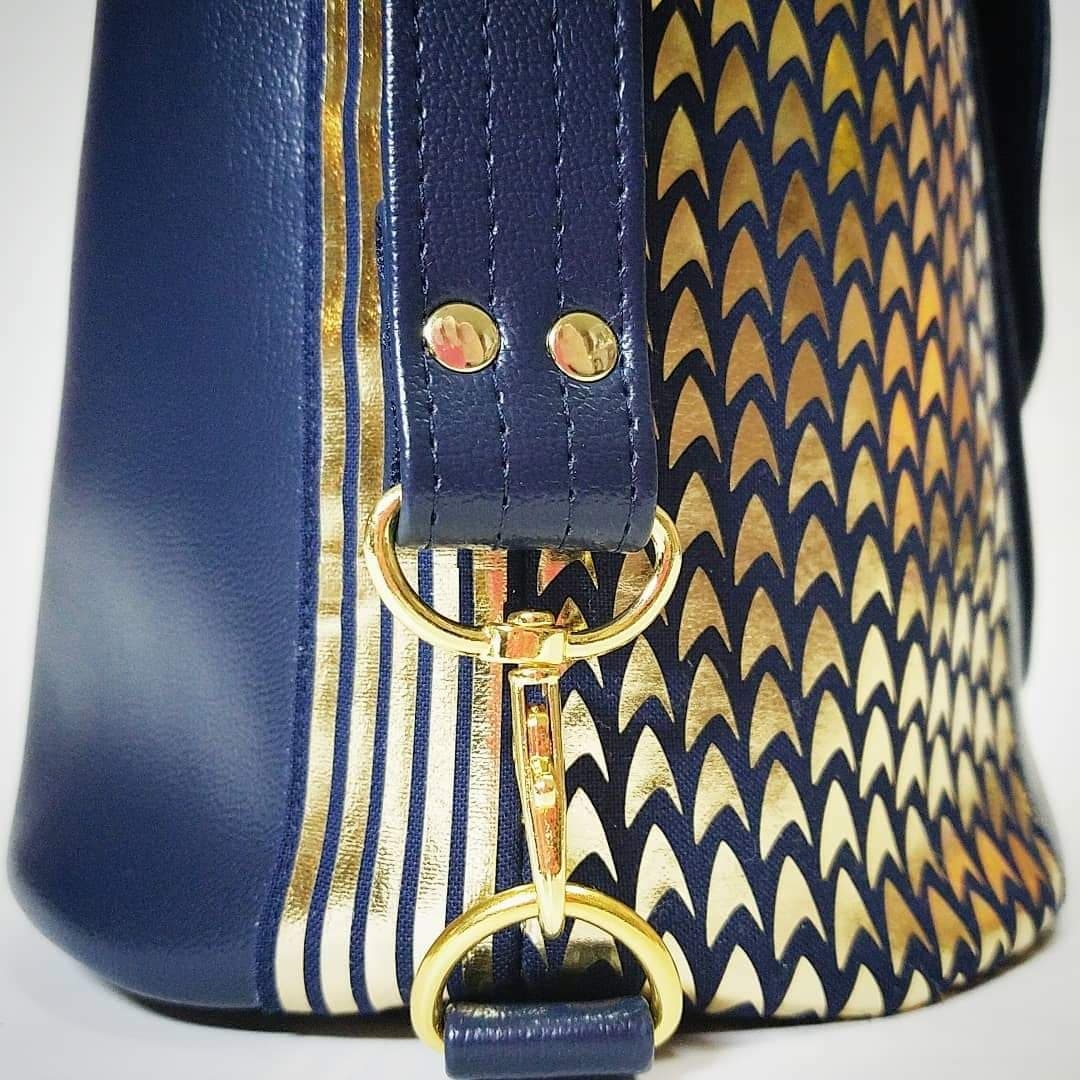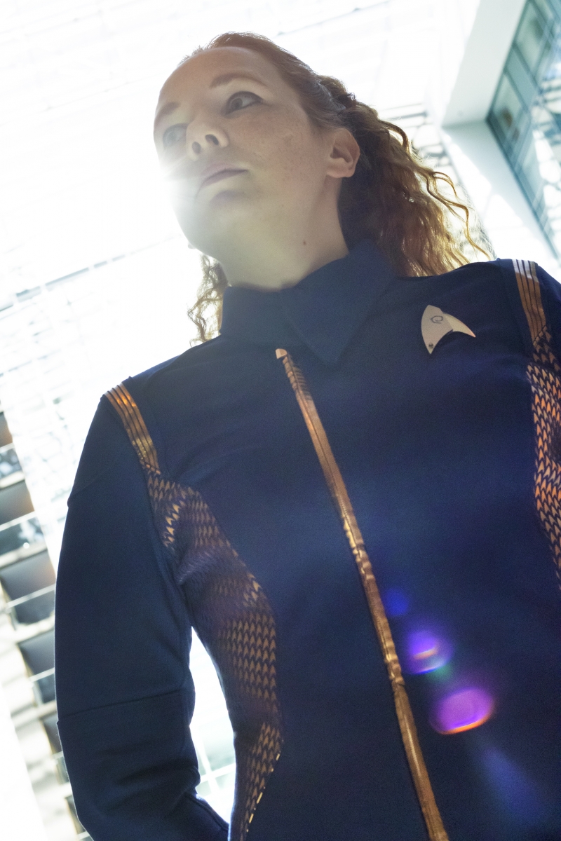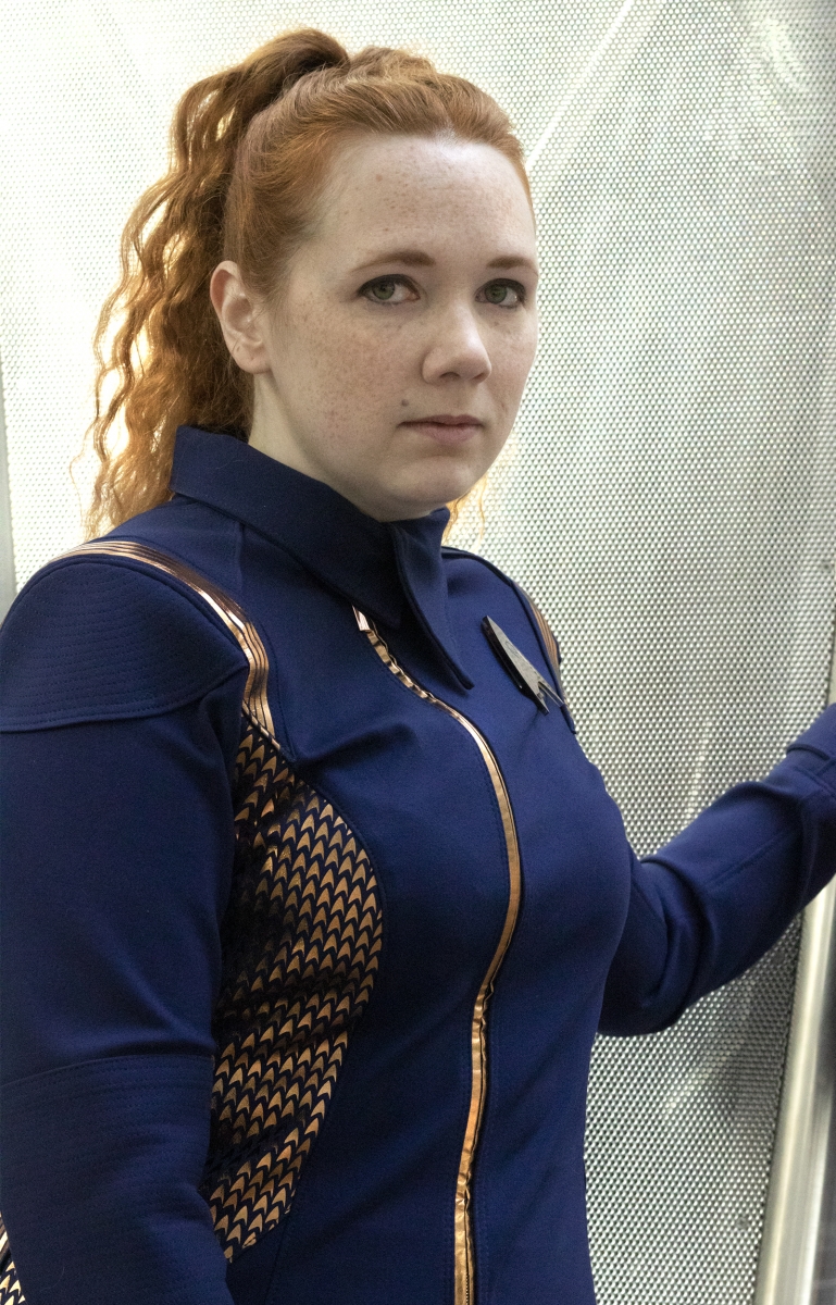 This gallery features her custom Star Trek Discovery skant-style uniform, a project totaling over 60 hours of work. Be sure to head to the next page(s) for her photos detailing the process of making this one of a kind costume, and the stunning Discovery purses and bags which are available for custom order through her Etsy shop, where you can find “fashionably geek handbags and wallets for everyone!”
