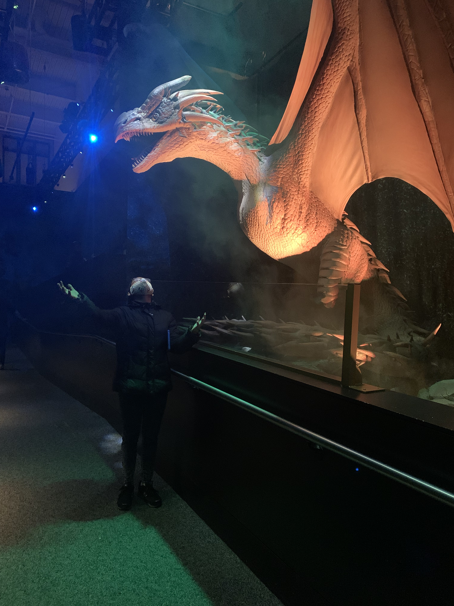 The Harry Potter exhibit is highly interactive. Visitors are asked to wear a unique band, where they can select their house, wand, Patronus, and take a photo. The band is not just for fashion or to gather your information. This system allows you to gather points for your house as you move about the exhibit. After registering, everyone is compiled into a magical room that shows a very familiar map. The room changes to a train station, then you’re on the Hogwarts Express, and before you know it, you are right in front of Hogwart’s Castle!